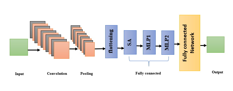 It is a type of neural network architecture that blends SA and MLP components. Self-attention refers to a model’s capacity to evaluate the corresponding weights of various components in its input sequence when producing estimates. A feed-forward artificial neural network made up of numerous layers of interconnected artificial neurons is known as a multi-layer perceptron. It has an i/p layer and an o/p layer, and the hidden layers are the layers that lie in between i/p and o/p. The MLP learns by adjusting the weights of the connections between the neurons. This is done using a technique called backpropagation. It operates with the o/p layer and works its way back to the i/p layer, updating the W of each connection based on the error between the desired o/p and the actual o/p. MLP is given as: