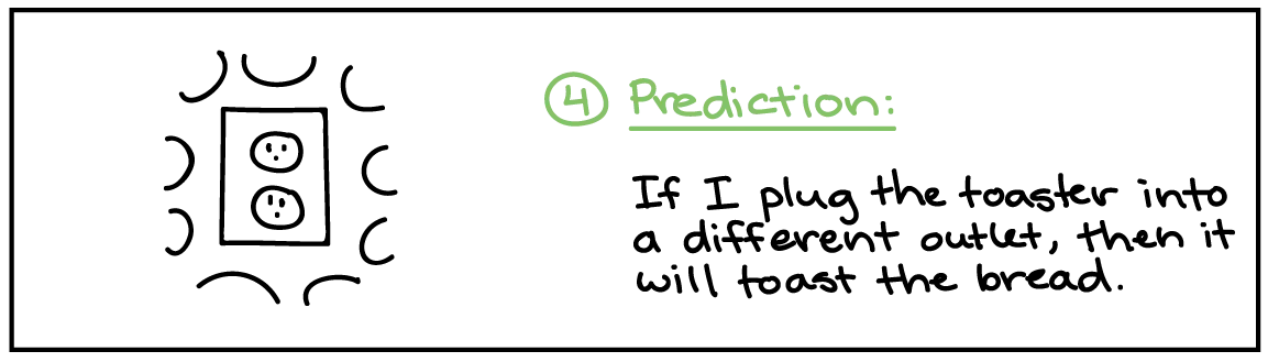 An expectation is a result we’d hope to check whether the theory is right. For this situation, we may foresee that if the electrical outlet is broken, at that point connecting the toaster to an alternate outlet should settle the issue.